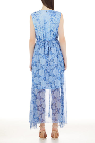 Liu Jo Women's Sleeveless Dress with V-neckline. Model with all-over floral print, wide shoulder straps, slightly flared skirt and elasticated and knotted waist. Details Composition: 100% viscose Regular fit V-neckline Floral design Ruffled details Elasticated and knotted waist Code WA3091T3337