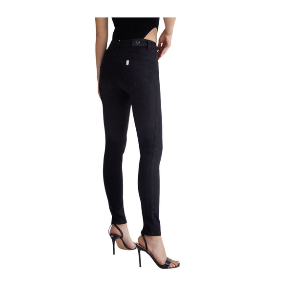 Five-pocket women's high-waisted jeans by Liu-jo with stretch cotton blend denim canvas fabric. With a skinny leg with logoed logo on the back and logo inserted on the back, it presents a comfortable line that gives elegance and resistance at the same time, becoming a must-have for lovers of style and fashion. Details Composition: 70% cotton, 18% modal, 8% polyester and 4% elastane Stretch cotton blend denim canvas Five pocket model Logoed logo on the back Logo on the back Hidden button and zip closure Skinny leg Bottom leg width: 13 cm Leg length: 76 cm Cod. UA3013DM188