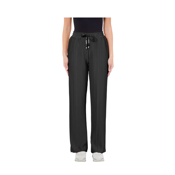 Women's trousers by Liu Jo with pleated motif. The stretch jersey garment features an elastic waistband with logoed drawstring at the waist and side pockets. The pleated motif gives the garment an uncommon elegance which makes it perfect for any type of occasion. Details Composition: 97% Polyester, 3% Elastane Pleated motif Wide leg Regular waist Elastic waist Lace closure Fit: Regular fit Cod. TA3073J6579