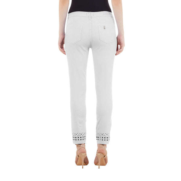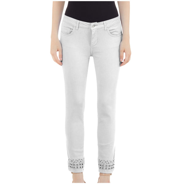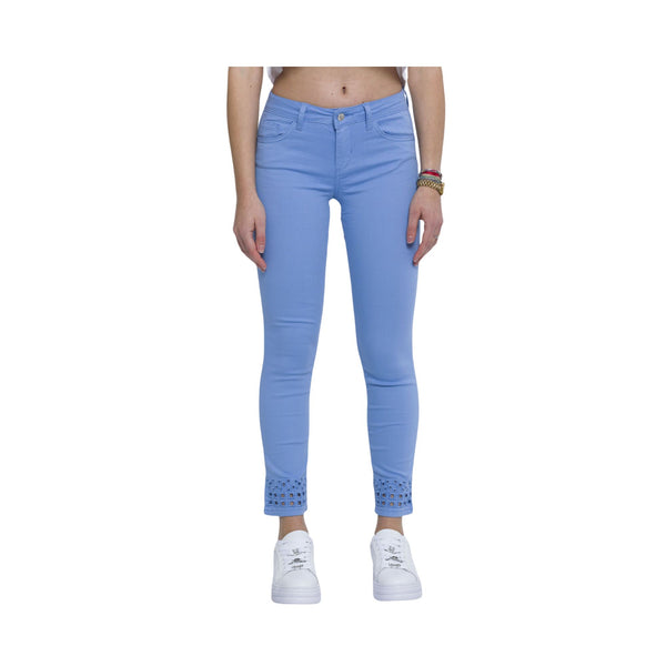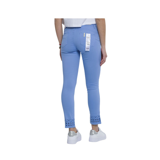 Women's trousers by Liu Jo made entirely of stretch cotton to give you maximum comfort. A perfect garment for the spring season, with bottom up cutouts, five pockets and front zip and button closure. Details Composition: 97% cotton, 3% elastane Fit: Five pockets Zip and button closure Solid color Code WA3228T4033