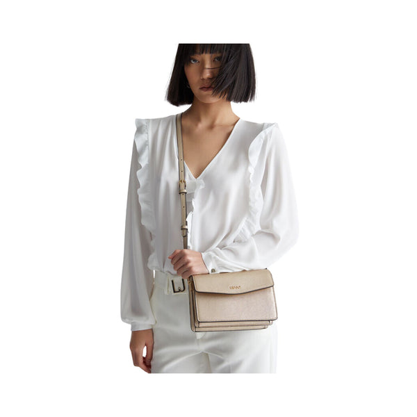 Women's bag by Liu Jo with adjustable solid color shoulder strap. The model is made of soft fabric and features a fixed and adjustable shoulder strap, the contrasting gold-plated brand logo on the front and a magnetic button flap closure. Inside we find two large compartments with an open internal pocket. This bag with its attention to detail and its versatility is definitely an added value to the outfit. Details Composition: 100% Eco-sustainable Polyurethane Internal zip pocket Magnetic button closure Measurements: 20 x 8.9 x 14 cm Water resistant Code AA3269E0087