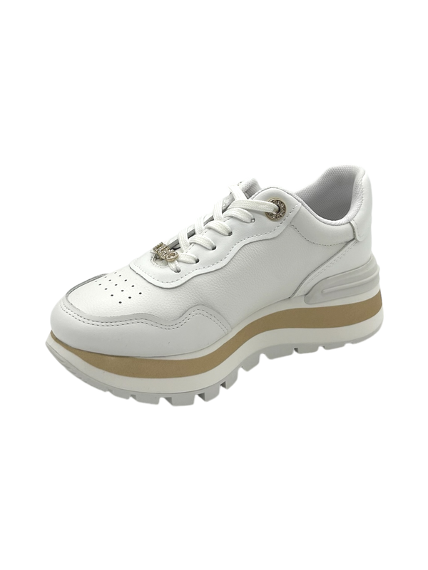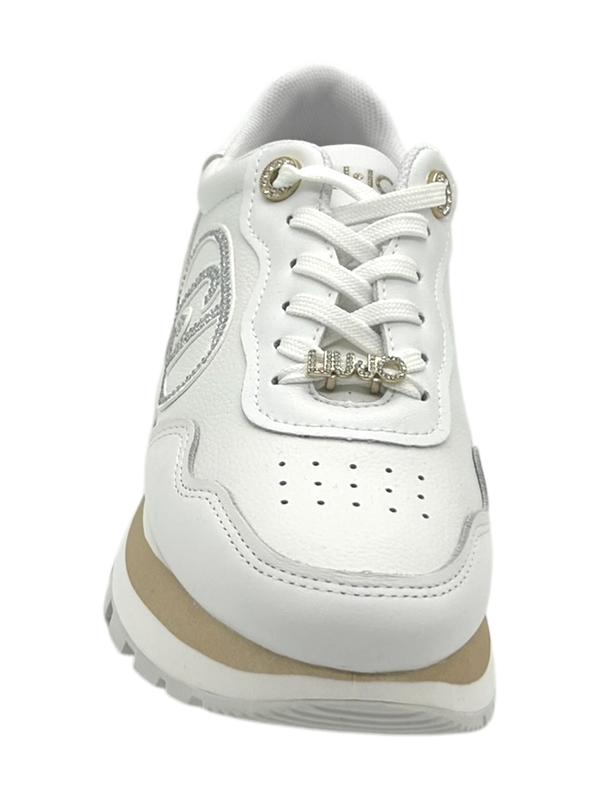 Join the fashion trends with Liu Jo Women's Sneakers with serrated tread! Crafted from quality materials including leather and tumbled leather inserts, these sneakers feature a maxi jewel logo and a flat lace-up fastening. The logo and rhinestone lace-up and rhinestone eyelets add a touch of elegance. The serrated rubber tread gives a unique look and the two-tone sole adds a touch of style. Add a touch of glamour to your outfit with these sneakers!