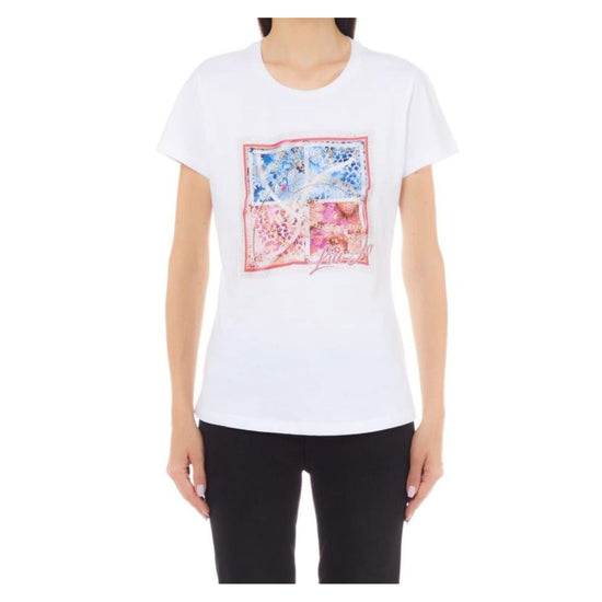 Liu Jo women's t-shirt made entirely of cotton to give you maximum comfort and softness. A short-sleeved t-shirt perfect for the spring season, wear it with casual jeans and matching sneakers for your walks with friends. Details Composition: 100% Cotton Fit: Regular Fit Short sleeves Round neckline Straight hem Print on the chest Cod. WA3532JS923
