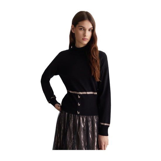 Add a touch of elegance and sparkle to your look with the Liu Jo Women's Sweater with Gold Details. With long sleeves and finished ribbed edges, it features a metal LJ logo with rhinestones that adds a touch of sparkle. In addition, the gold details on the waist and cuffs give a touch of class. Add this versatile piece to your wardrobe today!