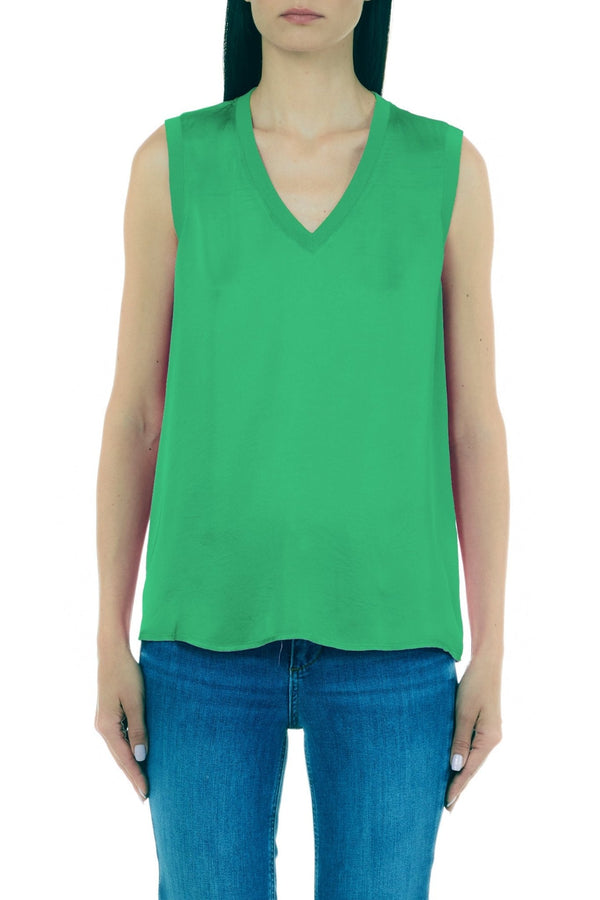 Let yourself be seduced by the charm of the Liu Jo sleeveless viscose top: the essentiality of its casual style and the regular fit that adapts to every silhouette. A V-neckline, regular shoulders and the logo plaque on the back give a touch of uniqueness to your look! A quality garment without compromise! Details Composition: 100% viscose Regular fit V-neck Sleeveless Regular shoulders Logo plaque on the back Solid color Classic design Cod. WA3145T3378