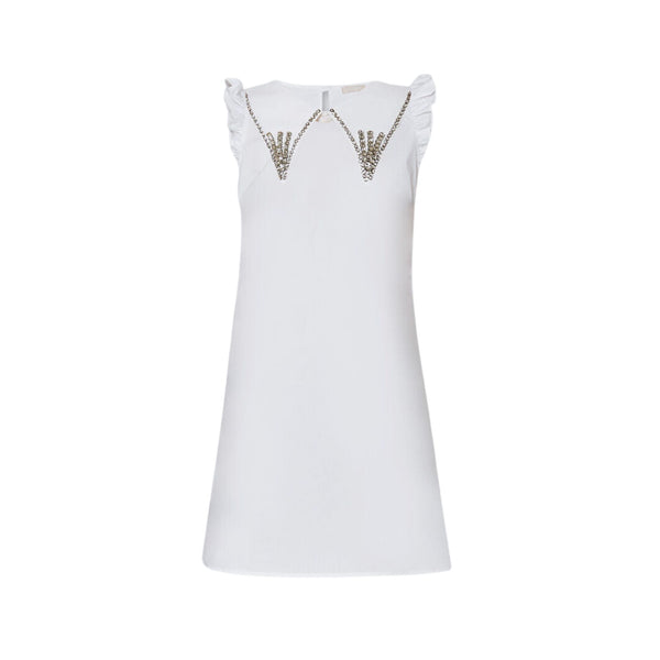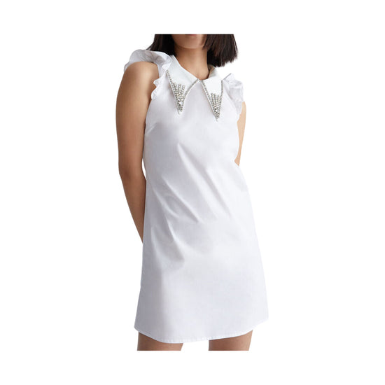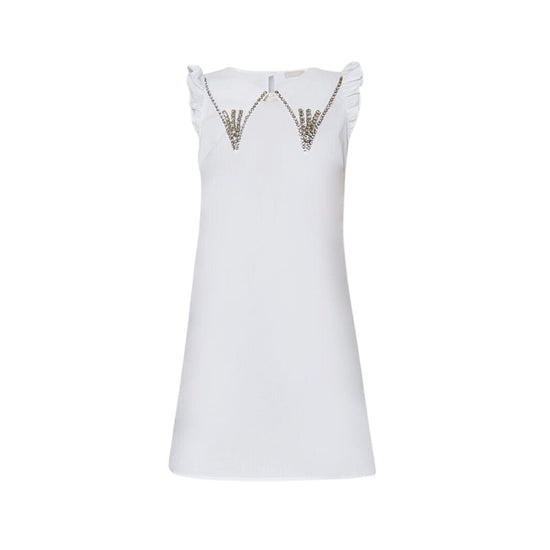 Mini- robe pour femme de Liu Jo en coton. Doté de volants sur les épaules et d'un col en strass. Un vêtement raffiné et polyvalent, parfait à combiner avec une sandale haute ou une pantoufle. Je ne passerais pas inaperçu !