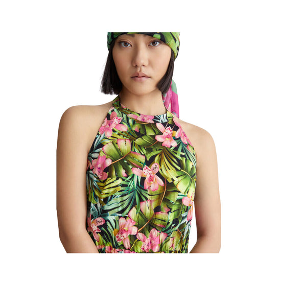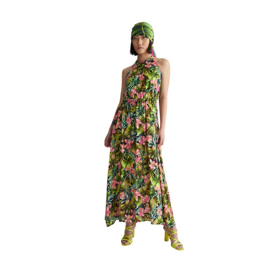 Découvrez la robe longue femme de Liu Jo ! Idéale pour créer une tenue moderne et raffinée, cette robe présente un imprimé floral intégral et est complétée par une ceinture assortie et un décolleté dos nu.