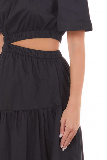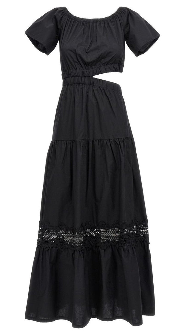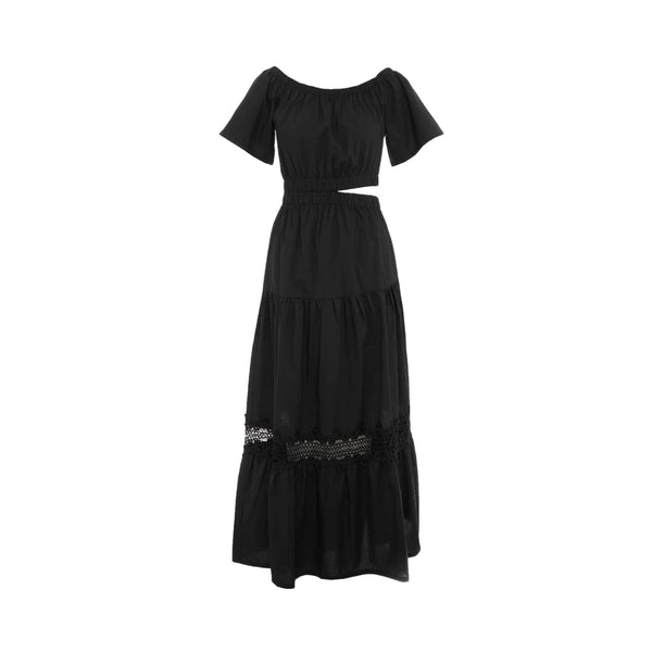 Robe longue à manches courtes en popeline de coton de Liu Jo avec jupe à volants, empiècements en dentelle ton sur ton, épaules dénudées et découpe sur le côté. Sa coupe classique le rend adapté à tout type de silhouette. Détails Composition: 100% coton Coupe régulière Encolure élastique Couleur unie Empiècements en dentelle Épaule dénudée et découpe sur le côté Cod.