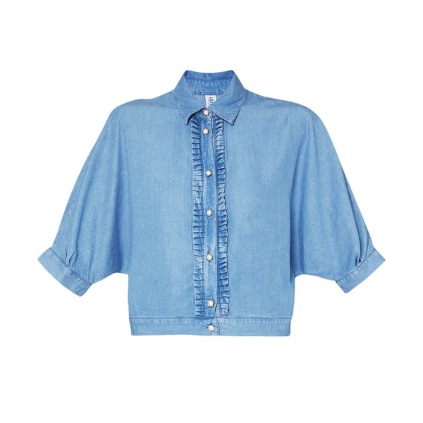 Chemise pour femme de Liu Jo en denim de couleur unie, caractérisée par un col classique, une fermeture centrale avec boutons et volants et des manches trois-quarts. Une chemise confortable et polyvalente, parfaite à associer avec un jean skinny ou large. Détails Composition: 100% Lyocell Couleur unie Col classique Volants sur le devant Fermeture boutonnée Manches trois-quarts Coupe: Coupe régulière Cod.