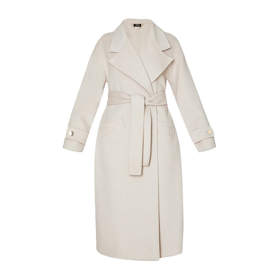 Manteau femme en laine mélangée avec ceinture Beige
