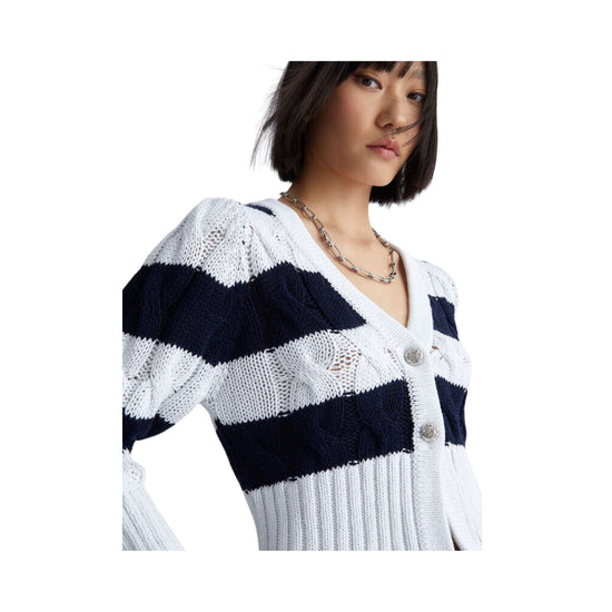 Un cardigan pour femme par Liu Jo . Laissez-vous envelopper par la douceur du tissu et affichez un style contemporain avec des détails précieux comme le travail du tressage et les boutons bijoux. Sa beauté sophistiquée donnera une touche de classe à votre tenue.
