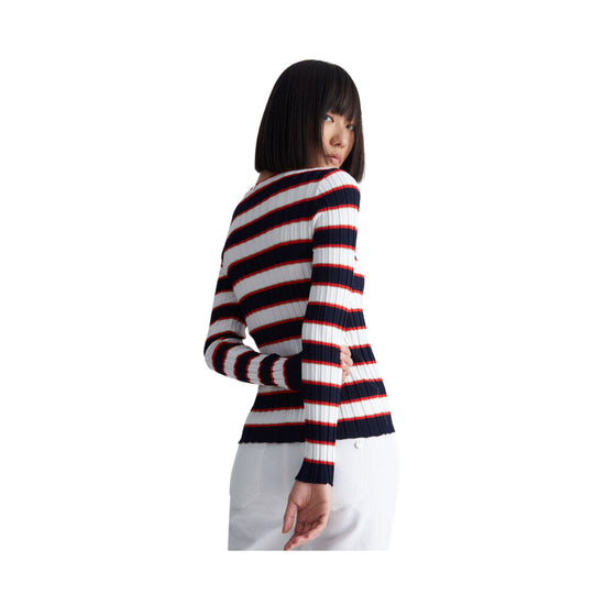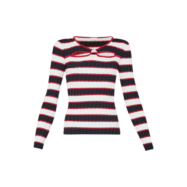 Pull femme rayé avec découpe