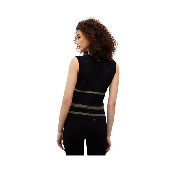 Top femme par Liu Jo : un haut femme d'une qualité et d'une beauté exceptionnelle. Le tricot le rend unique et particulier. Les emmanchures et le col en V le rendent parfait pour les journées plus chaudes. Il peut également être porté sous une veste assortie.
