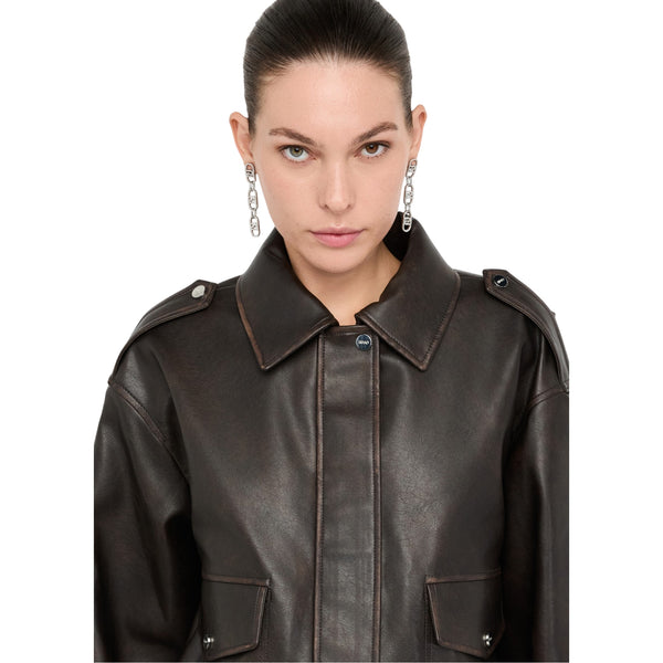 Questo giubbotto da donna in tessuto spalmato marrone firmato Liu Jo unisce stile e praticità con dettagli curati come profili a contrasto e alamari sulle spalle. Il colletto classico e le tasche con patta offrono un tocco elegante, mentre la chiusura con zip e bottoni nascosti garantisce un look pulito. L’inserto elastico sul fondo assicura comfort e vestibilità ottimale per ogni occasione. Un capo versatile che valorizza ogni outfit con un carattere deciso e raffinato.