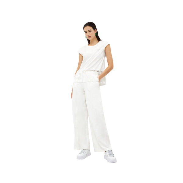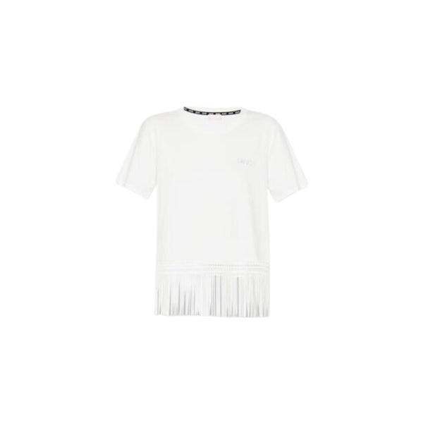 Le T-shirt femme en coton stretch de Liu Jo est le choix parfait pour un style unique et moderne ! Sentez-vous glamour en portant ce t-shirt doté d'une frange originale en bas. Un vêtement tendance qui ne passera pas inaperçu !