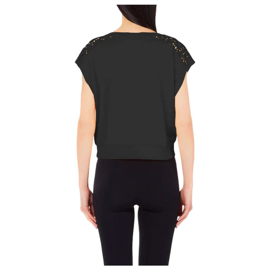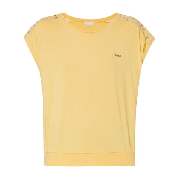 T-shirt femme Liu Jo confectionné dans un tissu confortable et extensible pour vous offrir un maximum de confort et de douceur. Un t-shirt à manches courtes parfait pour la saison printanière, portez-le avec un pantalon uni et des baskets assorties. Détails Composition : 95% Viscose, 5% Élasthanne Coupe : Regular Fit Manches courtes Ourlet droit Encolure ronde Couleur unie Détails en dentelle Cod.