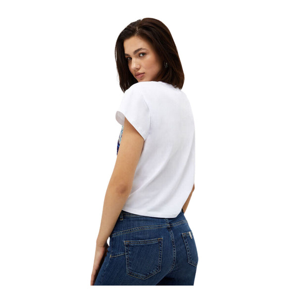 T-shirt femme Liu Jo entièrement en coton stretch pour donner au vêtement douceur et confort. Un t-shirt à manches courtes parfait pour la saison printanière, portez-le avec un pantalon décontracté et des baskets assorties pour vos soirées entre amis Détails Composition : 95% Coton, 5% Élasthanne Coupe : Coupe Regular Manches courtes Motif foulard Encolure ronde Manches courtes Code. WA3154J7821