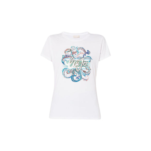 T-shirt pour femme de Liu Jo en jersey de coton avec strass et logo, disponible en trois imprimés et couleurs différents. Ce vêtement produit de manière éco-durable présente des manches courtes, un col rond en maille côtelée et un logo signature en strass sur un empiècement imprimé en cachemire multicolore. Complétez votre look avec un jean tendance pour créer un style décontracté et informel parfait pour la période printemps-été. Détails Composition: 100% coton Imprimé cachemire multicolore Pull côtelé Logo strass griffé Coupe: Regular Cod.