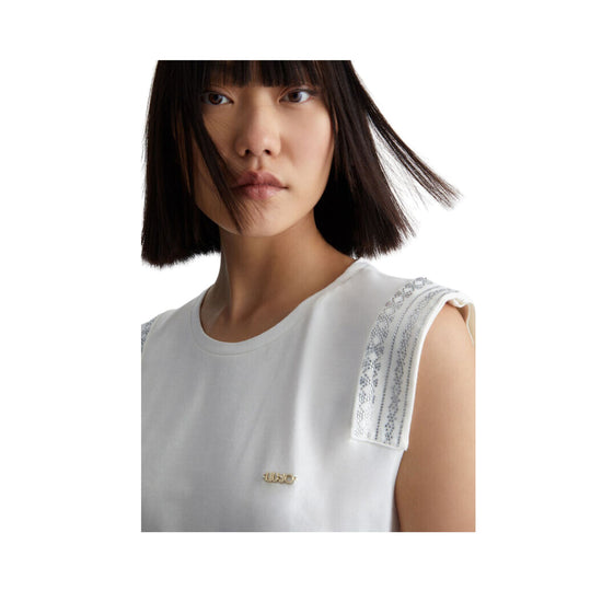 Soyez unique avec ce top femme Liu Jo avec strass qui ajoutera une touche de lumière et de glamour à votre look ! Fabriqué dans un tissu ultra doux, ce haut convient à toutes les occasions et est venu égayer votre saison !
