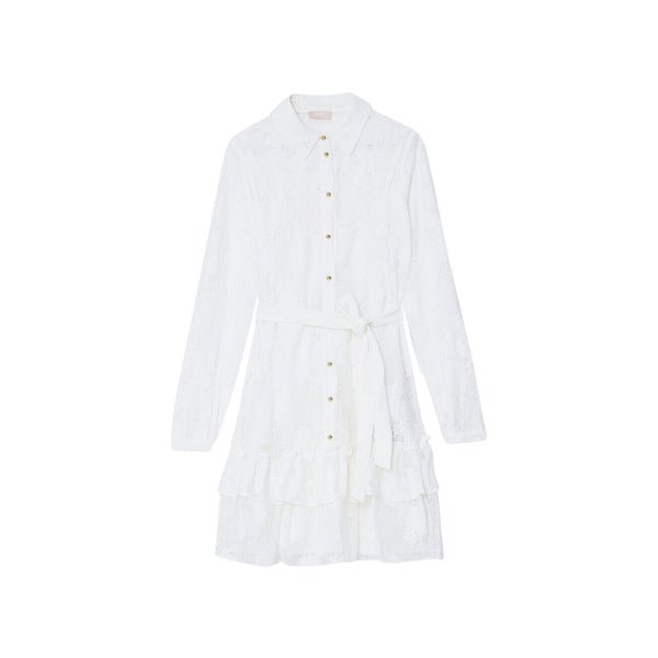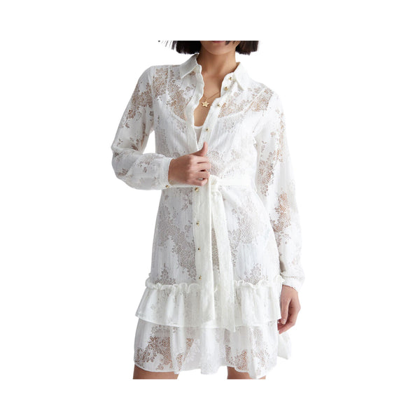 Abito Donna firmato Liu Jo realizzato in misto cotone a tinta unita, con pizzo, balza sul fondo, fusciacca in vita e chiusura centrale con bottoni. Un abito raffinato e versatile, perfetto per essere abbinato ad un sandalo o una ciabattina.
