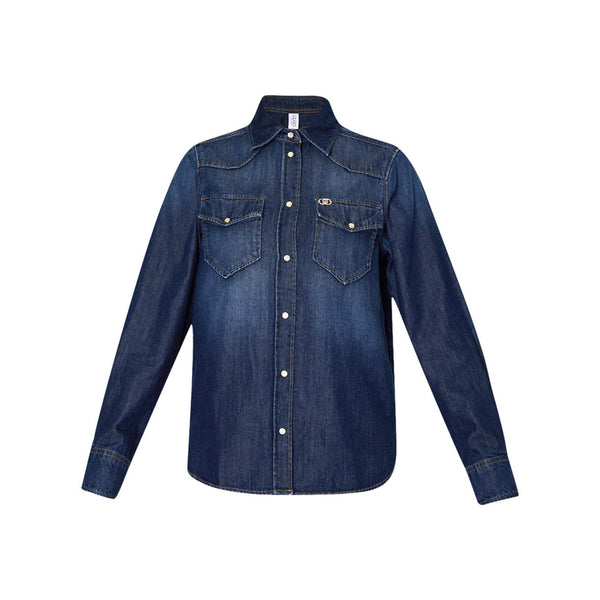 Questa camicia donna in denim di misto cotone firmata Liu Jo presenta un lavaggio used che dona un look casual e di tendenza. Il colletto classico e i taschini con patta e bottone sul petto aggiungono un tocco elegante, mentre il logo in metallo e la chiusura con bottoni a pressione completano il look. Un capo versatile e di alta qualità per un look irresistibile!