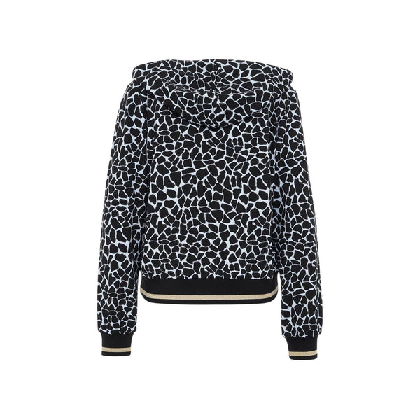 Felpa Donna firmato Liu Jo con stampa animalier e zip. Il capo realizzato in misto viscosa è caratterizzato da un taglio dritto, maniche lunghe con polsini, logo metallico posizionato sul fianco del modello, cappuccio e coulisse. Un capo casual perfetto da abbinare a un pantatuta e un paio di sneakers. Dettagli Composizione: 82% Viscosa 13% Poliammide 5% Elastan Vestibilità: Regular fit Stampa Animalier Elastico in vita e ai polsi Logo Metallico Maniche lunghe Cod. TA3106J6182