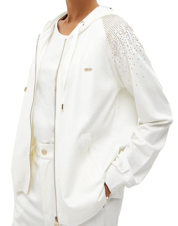 Felpa aperta con borchie donna - Avorio