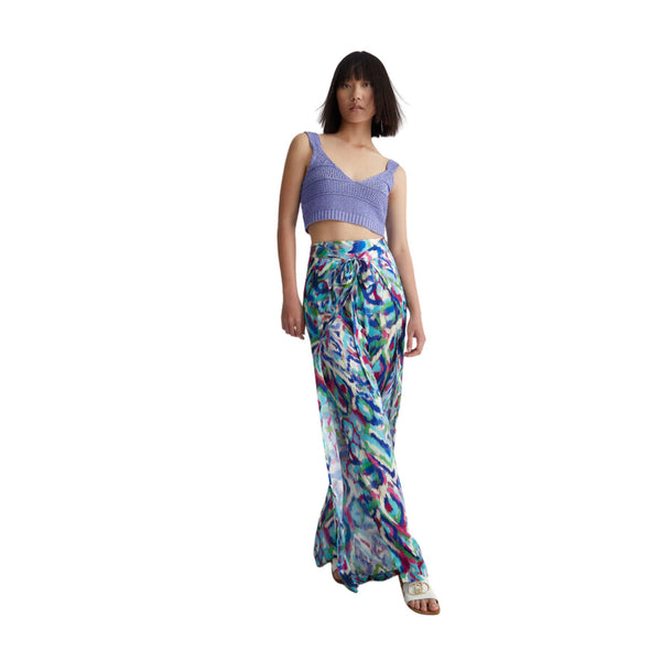 Sperimenta l'eleganza pura e un estro senza precedenti con i Pantaloni Donna firmati Liu Jo! Realizzati in raso morbido, questi pantaloni sono caratterizzati da una stampa all over ed un taglio largo che crea un effetto pareo unico. Respira l'aria di freschezza e innovazione con questo modello iconico!