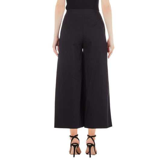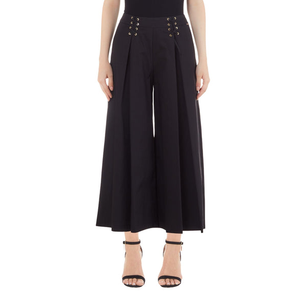 Pantalone da donna firmato Liu Jo effetto gonna con maxi pence e dettagli con lacci. Presenta lunghezza cropped e vita alta. Ideale per la stagione primaverile e per chi ama le gonne ma non vuole rinunciare alla comodità del pantalone. Dettagli Composizione: 100% cotone Vestibilità: Cropped Fit Tinta unita Effetto gonna Cod. WA3160 T3051