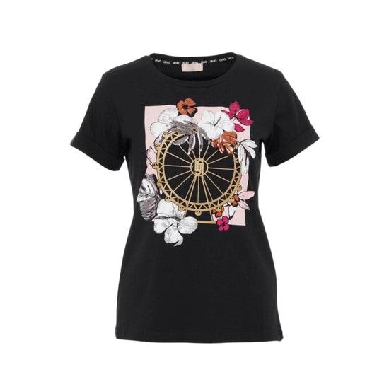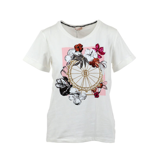 T-shirt Donna firmata Liu Jo in cotone con stampa floreale. Il capo ecosostenibile in jersey di cotone stretch dispone di scollo rotondo, maniche corte con risvolto e stampa floreale a contrasto con paillettes. Completa il tuo look con un pantalone a palazzo e un paio sneaker per passare al meglio le giornate di sole primaverili. Dettagli Composizione: 95% cotone, 5% elastan Stampa floreale Dettagli in paillettes Scollo rotondo Vestibilità: Regular Cod. TA3103J5003