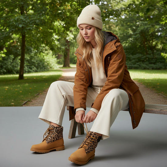 Gli Stivali Donna 6-Inch con dettaglio animalier rivisitano l’iconico modello Timberland con un tocco di stile originale. Realizzati con lacci in cuoio e collo imbottito, assicurano comfort e sostegno a ogni passo. La fodera in tessuto ReBOTL a basso impatto ambientale e la soletta rimovibile con tecnologia Anti-Fatigue garantiscono praticità e comodità duratura. Il rinforzo in acciaio sostiene l’arco plantare, mentre la suola in gomma assicura aderenza e resistenza. Il dettaglio animalier sulla parte superiore aggiunge un accento fashion a un modello senza tempo.