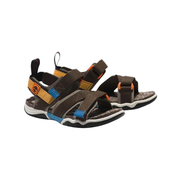 Questo sandalo a doppia fascia da bambino firmato Timberland presenta una tomaia in tessuto ReBOTL realizzato con almeno il 50% di plastica riciclata e una pratica chiusura in velcro. Presenta una comoda soletta in EVA, suola in gomma per la massima aderenza e rivestimento della soletta sottoposto a trattamento antibatterico Sanitized per il controllo degli odori.