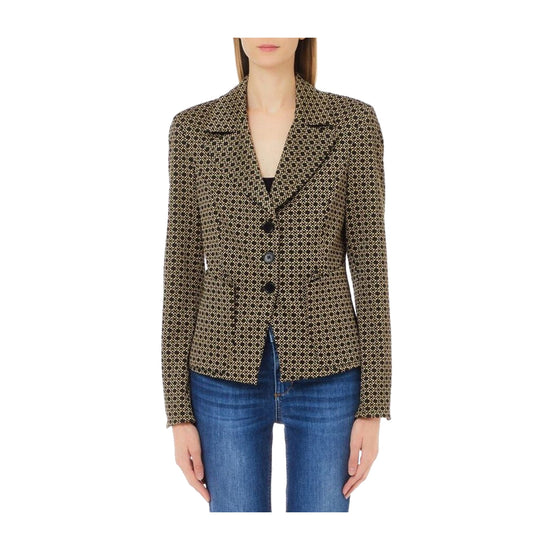 Aggiungi un tocco di moda alla tua collezione di giacche con la Giacca da Donna a tre bottoni firmata Liu Jo! Il suo elegante scollo a V e la fantasia geometrica la rendono perfetta per un look sofisticato. Inoltre, le tasche laterali sono comode e pratiche. Non puoi lasciartela sfuggire! Dettagli Composizione: 60% Poliestere 20% Poliammide 15% Poliestere metallizzato 5% Elastan. Vestibilità: Regular Fit. Scollo a V. Chiusura a tre bottoni. Fantasia geometrica. Tasche laterali. Cod. WF4200J4066